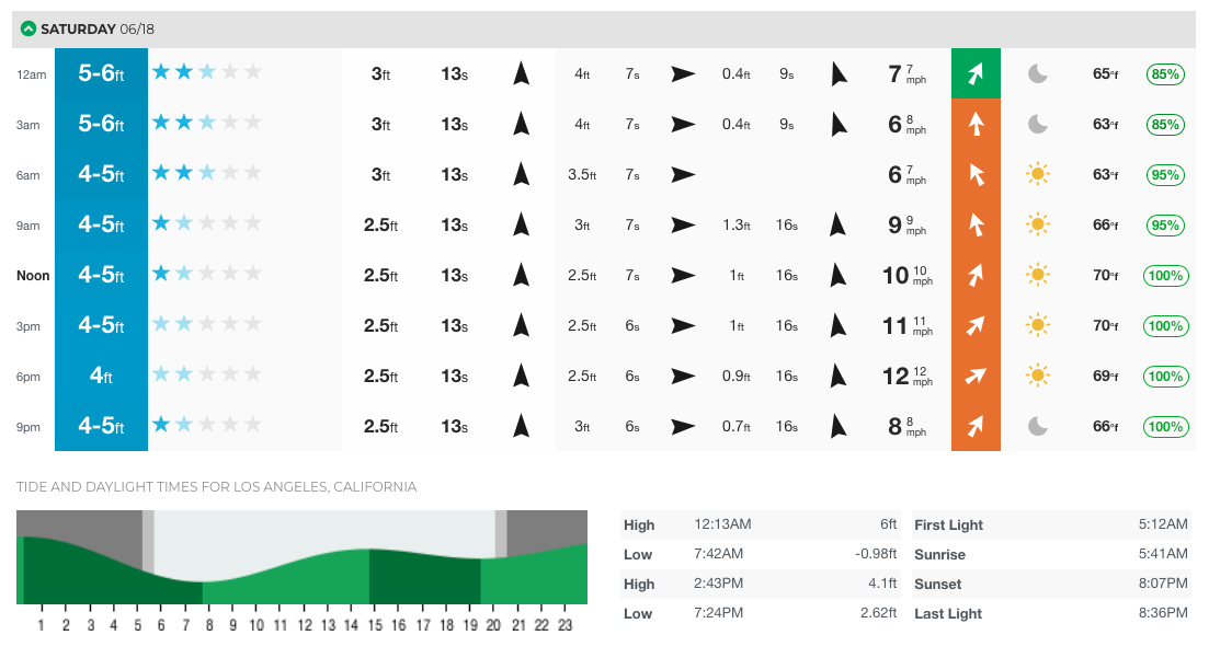 Conditions look fair: waves 4-5 feet, SUNNY, water likely 64+ F (about as warm as it gets), some wind. Come join us for fair beginner conditions!