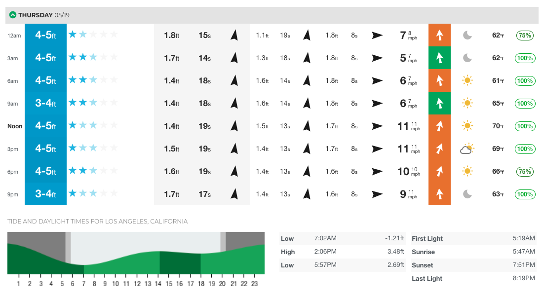 Conditions, good news: : waves 3-5 feet, SUNNY.